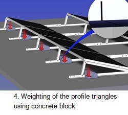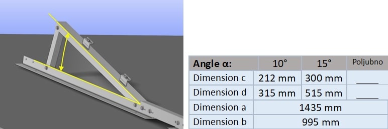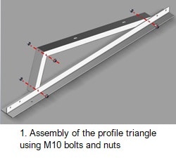 The system is suitable for all types of straight roofs. It offers a wide variety of possible positions and the whole construction is movable and may be assembled around obstacles. The main advantage of the system is the number of components. Different lengths of the assembly parts allow the panels to be set under different angles.